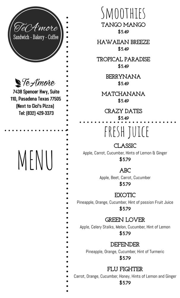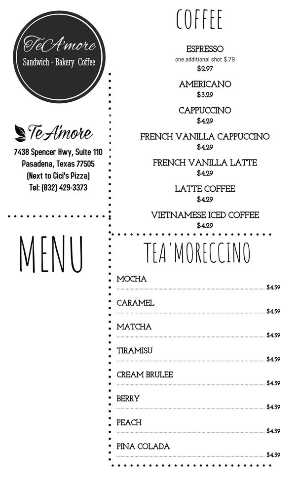 Welcome to TeA'more, a charming café located in Pasadena, TX, where culinary creativity meets a warm atmosphere. This delightful brand specializes in a curated menu of delicious sandwiches, aromatic coffees, and refreshing juices, making it a perfect spot for food lovers and casual diners alike.